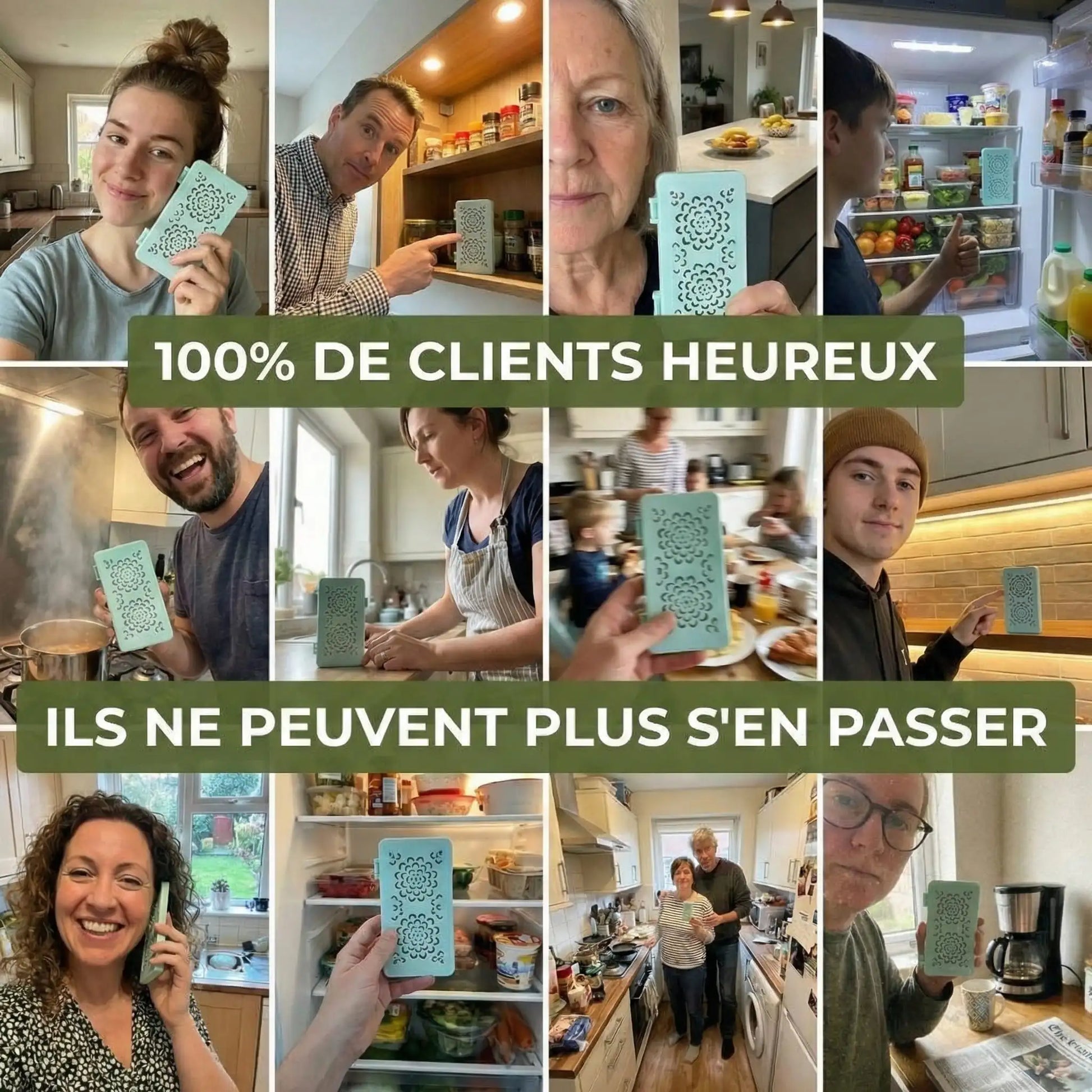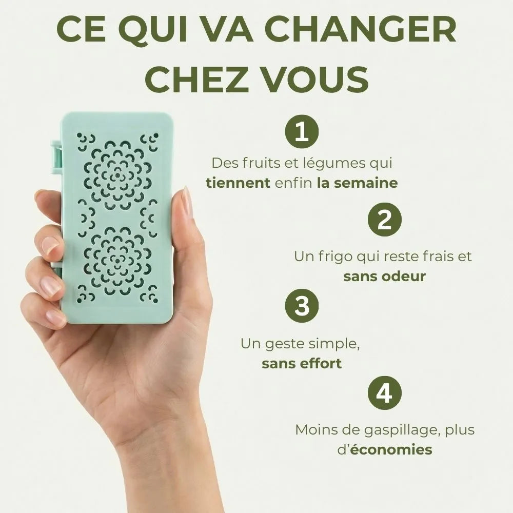 Absolument. En plus de l'action anti-éthylène, la structure poreuse du filtre capture les odeurs fortes (fromage, oignon). C'est un désodorisant frigo naturel qui garde votre air sain sans parfums chimiques.